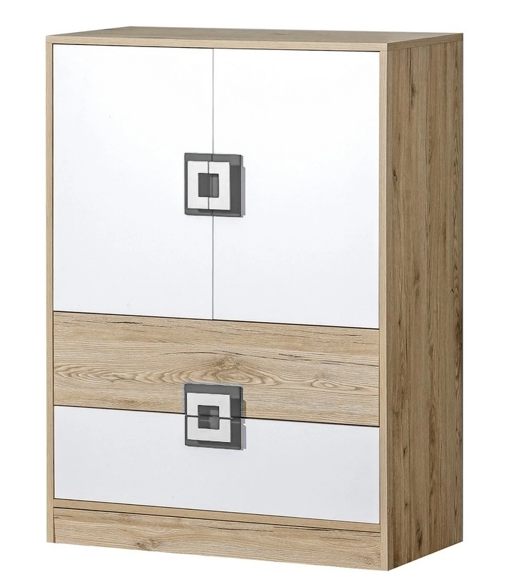 Komoda, dub jasný/bílá/popel. Tento styl nábytku zaujme každou mladší generaci. Komoda je vyrobena z kvalitní LTD desky hraněné ABS lištou. Korpus je v barvě dub jasný, dveře jsou v kombinaci barev bílá
