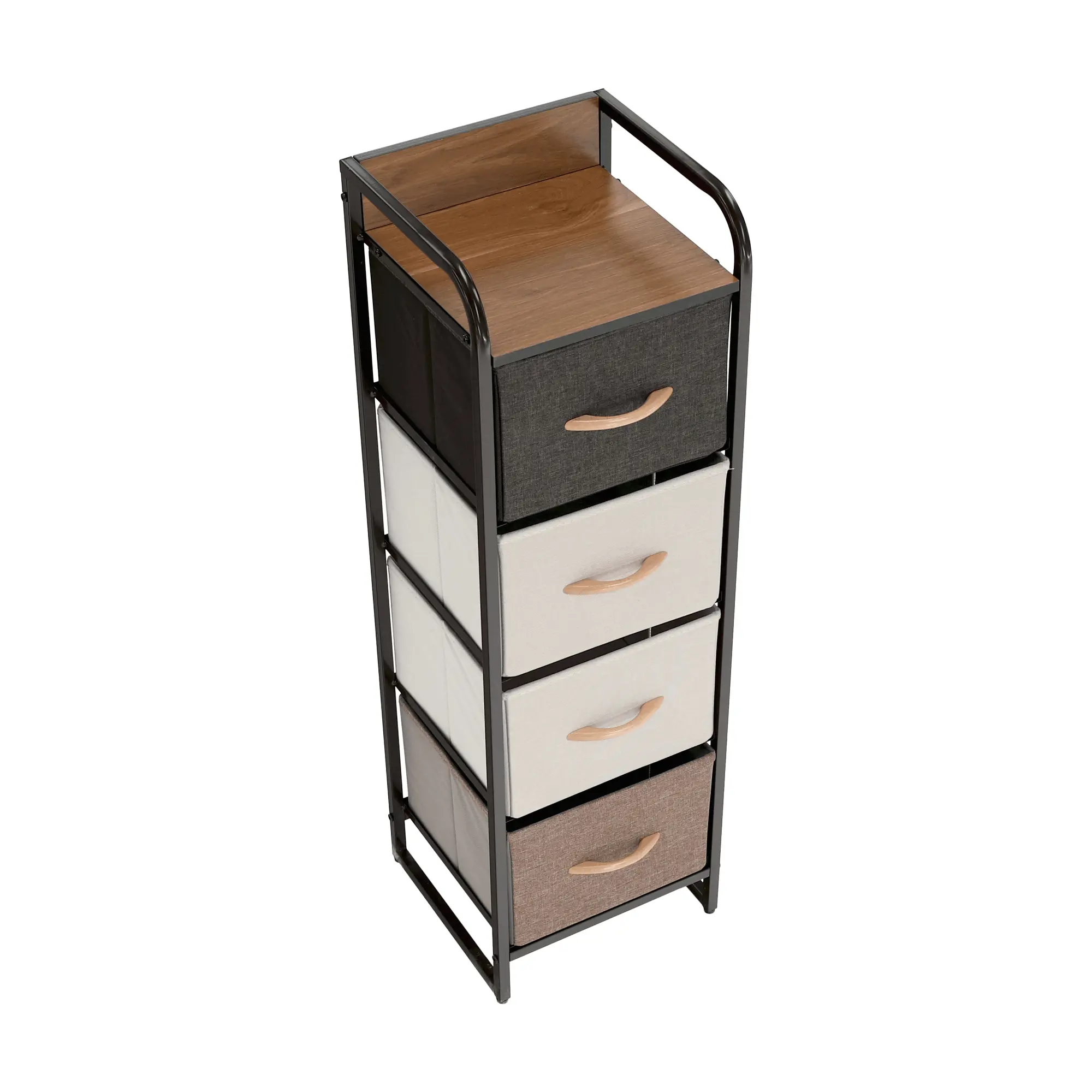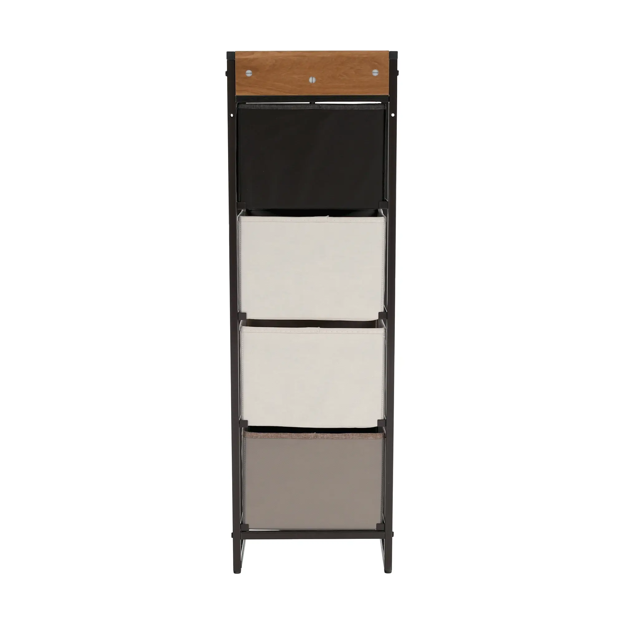 Komoda s látkovými šuplíkyToužíte vaší domácnosti dodat nový šmrnc? Komoda s hravým, stylovým a moderním designem. Disponuje úložným prostorem v podobě čtyř šuplíků. Konstrukce je vyrobena z kovu v černé