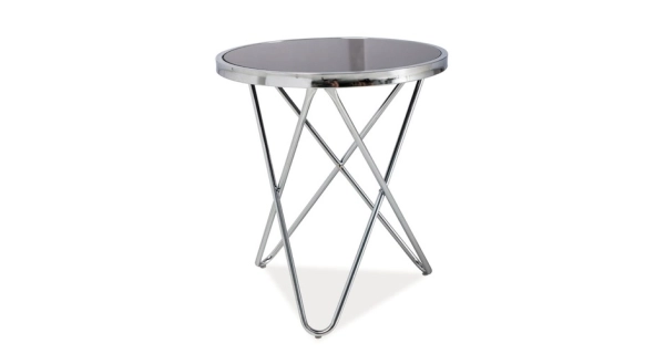 Moderní kulatý konferenční stolek menších rozměrů, chromované nohy trojúhelníkového tvaru, vrchní deska je z tvrzeného skla černé barvy. Výška: 50 cmŠířka: 45 cmHloubka: 45 cmBarva: chromBarva podrobně: