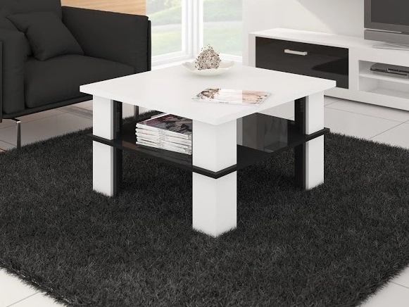 Konferenční stolek DARGANATA A, bílá/černý lesk, 5 let záruka