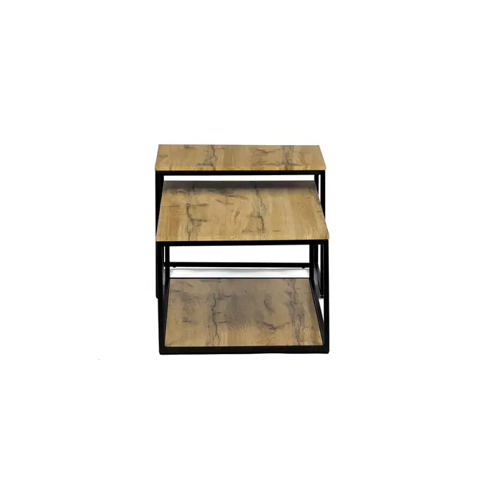 Konferenční stolek v industriálním stylu kombinuje eleganci a funkčnost. Deska z MDF v dekoru divokého dubu nabízí teplý přírodní vzhled, který krásně kontrastuje s černou kovovou konstrukcí. Díky