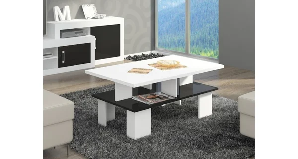 Konferenční stolek Barva: bílá/černý lesk Rozměry (šxvxh): 110 x 49 x 65 cm Materiál: LTD 16 mm LED osvětlení není v ceně. Dodání v demontu.