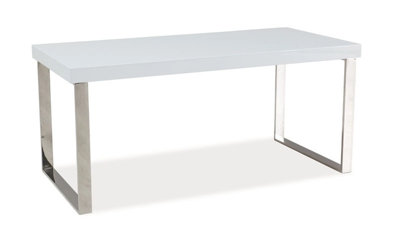 Konferenční stolek v moderním provedení, vhodný do bytu, čekárny či kanceláře. Deska stolku je z kvalitní MDF lakované bílou barvou. Elegantně tvarované nohy jsou z pochrómovaného kovu. MDF je stálobarevná, voděodolná a velice dobře se udržuje. Výška: 46 cm Šířka: 100 cm Hloubka: 50 cm Barva: bílá Materiál: chrom, MDF Dodáváno v demontu, záruka 24 měsíců.