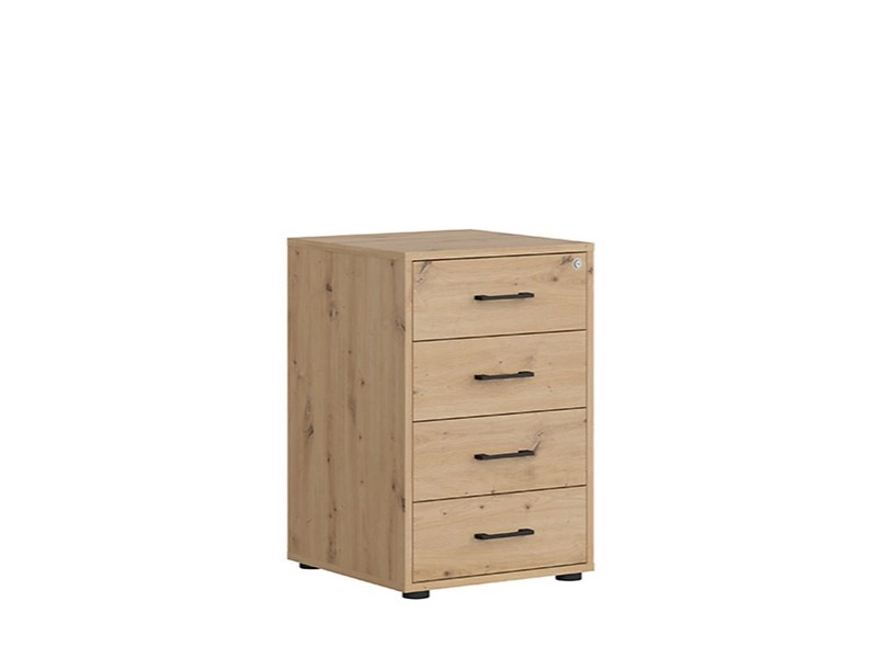 Kontejner se zásuvkama - 4 zásuvky na pojezdech soft close (tichý a plynulý dojezd) - součástí je také zámek - pro snadnější manipulaci má kontejner kolečka s brzdou Materiál: lamino Barva: dub artisan Rozměry (šxvxh): 50 x 75,5 x 50 cm