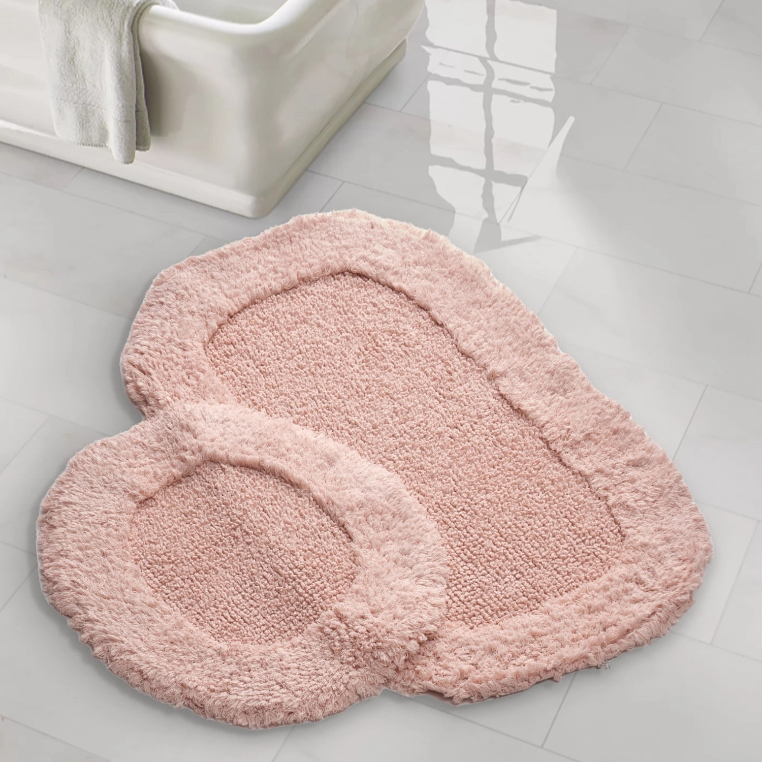 Vylepšete svou koupelnu naší luxusní a praktickou sadou koupelnových předložek. Zažijte maximální pohodlí a dopřejte si měkkost 100% bavlny. Nedělejte kompromisy v oblasti stylu ani bezpečnosti - naše protiskluzová spodní strana zajistí vaši pohodu. Díky snadné pratelnosti v pračce je udržování čistoty hračkou. Vyzdvihněte svůj koupelnový dekor díky elegantní pudrové barvě. Dopřejte si luxus, který si zasloužíte.