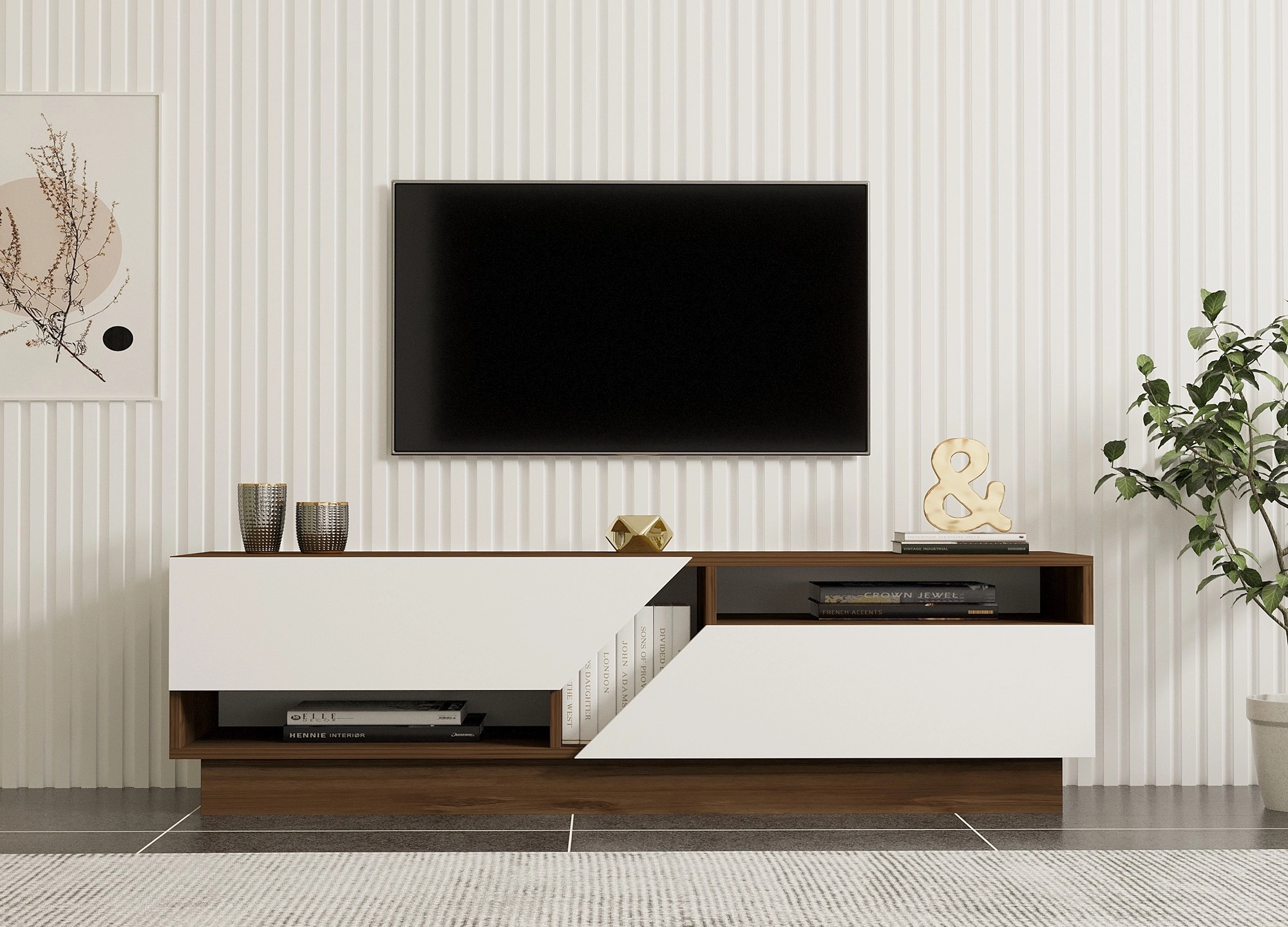 TV stolek BATTLE, vlašský ořech/bílá