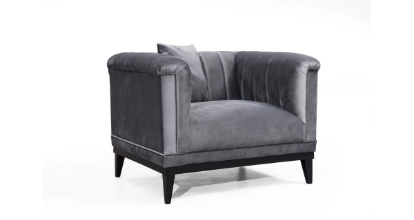 Naše křídlové křeslo s elegantním a moderním designem dodá eleganci každé místnosti. Tmavě šedá barva a černé dřevěné nohy vytvářejí výrazný kontrast, zatímco jednobarevné provedení a industriální pojetí jí dodávají jedinečný a moderní vzhled.