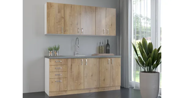 Kuchyně ESTRELLA 180 cm Tato kuchyně je inspirativní ukázkou možného sestavení. Skříňky nabízíme samostatně a lze si tak sestavit kuchyni na míru. Složení: - dolní skříňky (šířka x výška x