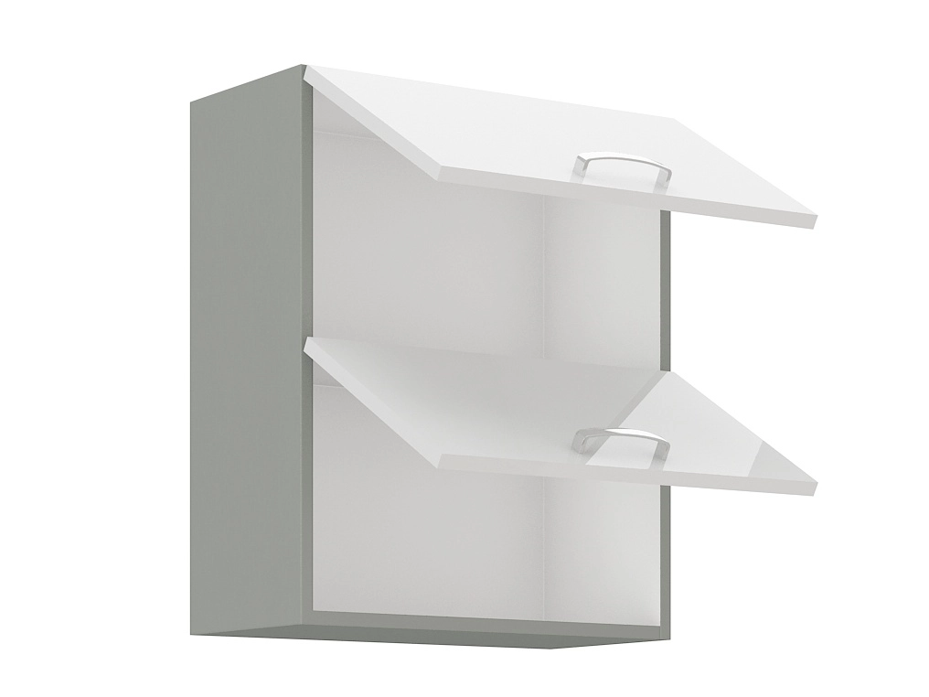 Barva: korpus-šedý, dolní dvířka - bílý lesk, horní dvířka - bílý lesk, systém tichého dovírání.