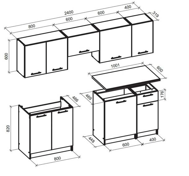 Kuchyně MINOUS 180/240 cm, korpus: antracit, dvířka: dub craft