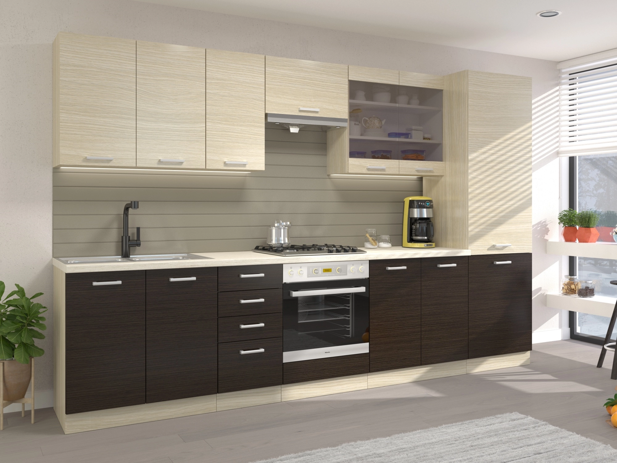 Kuchyně NORFOLK, 320/260, dub ferrara/legno tmavé