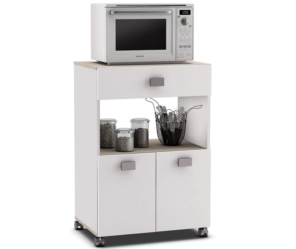 Kuchyňská skříňka vhodná pro umístění mikrovlnné trouby Barva: bílá/akát Materiál: lamino Rozměry (šxhxv): 59,6 x 41,2 x 88,3 cm Dodáváno v demontu.