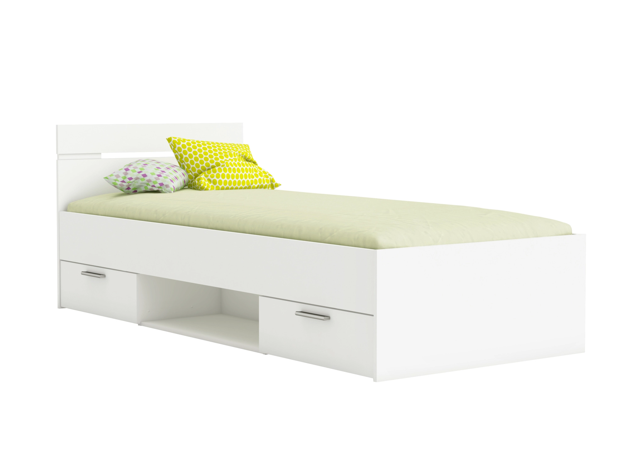 Jednolůžková postel Barva: bílá Materiál: lamino Rozměry (šxhxv): 94,5 x 204,3 x 74,2 cm, výška u nohou 39,6 cm, ložná plocha 90 x 200 cm V ceně postele není rošt ani matrace. Do postele patří rošt v pevném rámu nebo matrace s pevným rámem. Výška matrace musí být minimálně 15 cm! Dodáváno v demontu. Záruka 24 měsíců.