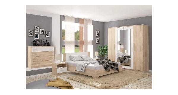Ložnice KABIR 1 s postelí 160x200 cm, dub sonoma/bílá