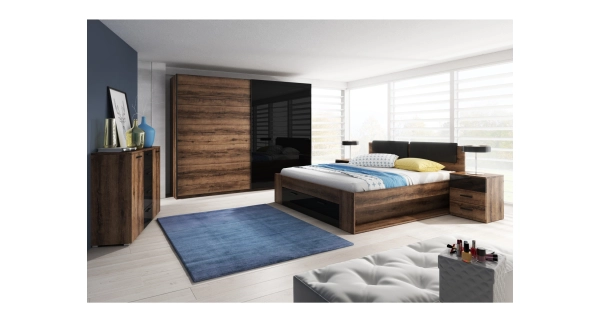Ložnice ZANDER 1 s postelí 160x200 cm, dub monastery/černý lesk