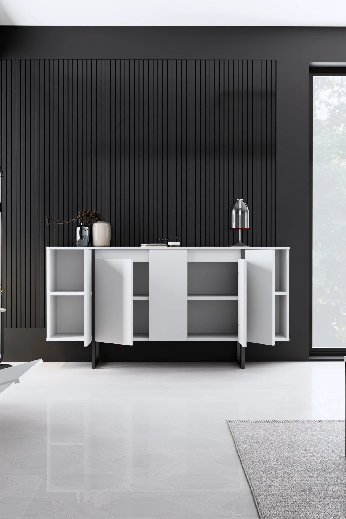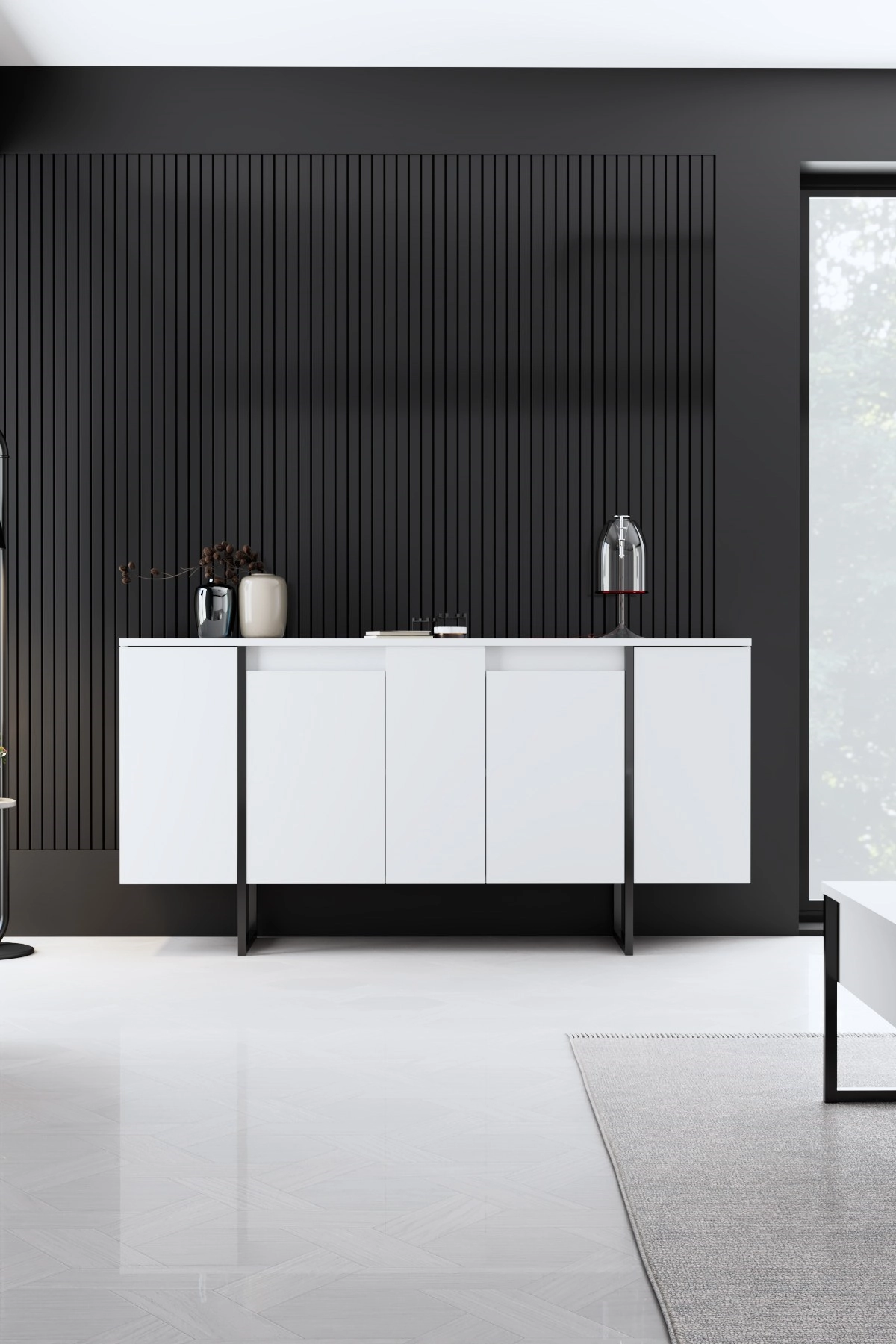 Technické detaily:Materiál: Materiál: 100% melaminem potažená dřevotřískaTloušťka: 18 mmKovové nožky pro větší stabilituŠířka: 160 cmHloubka: 35 cmVýška: 80 cmBarva: bílá a černáDodáváno v demontu.