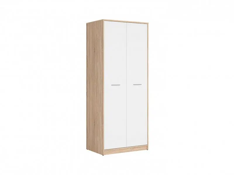 Šatní skříň Barva: dub sonoma/bílá Rozměry (šxvxh): 80 x 197 x 54,5 cm Materiál: lamino Vnitřní členění: v horní části pevná police a pod ní šatní tyč Dodání v demontu.