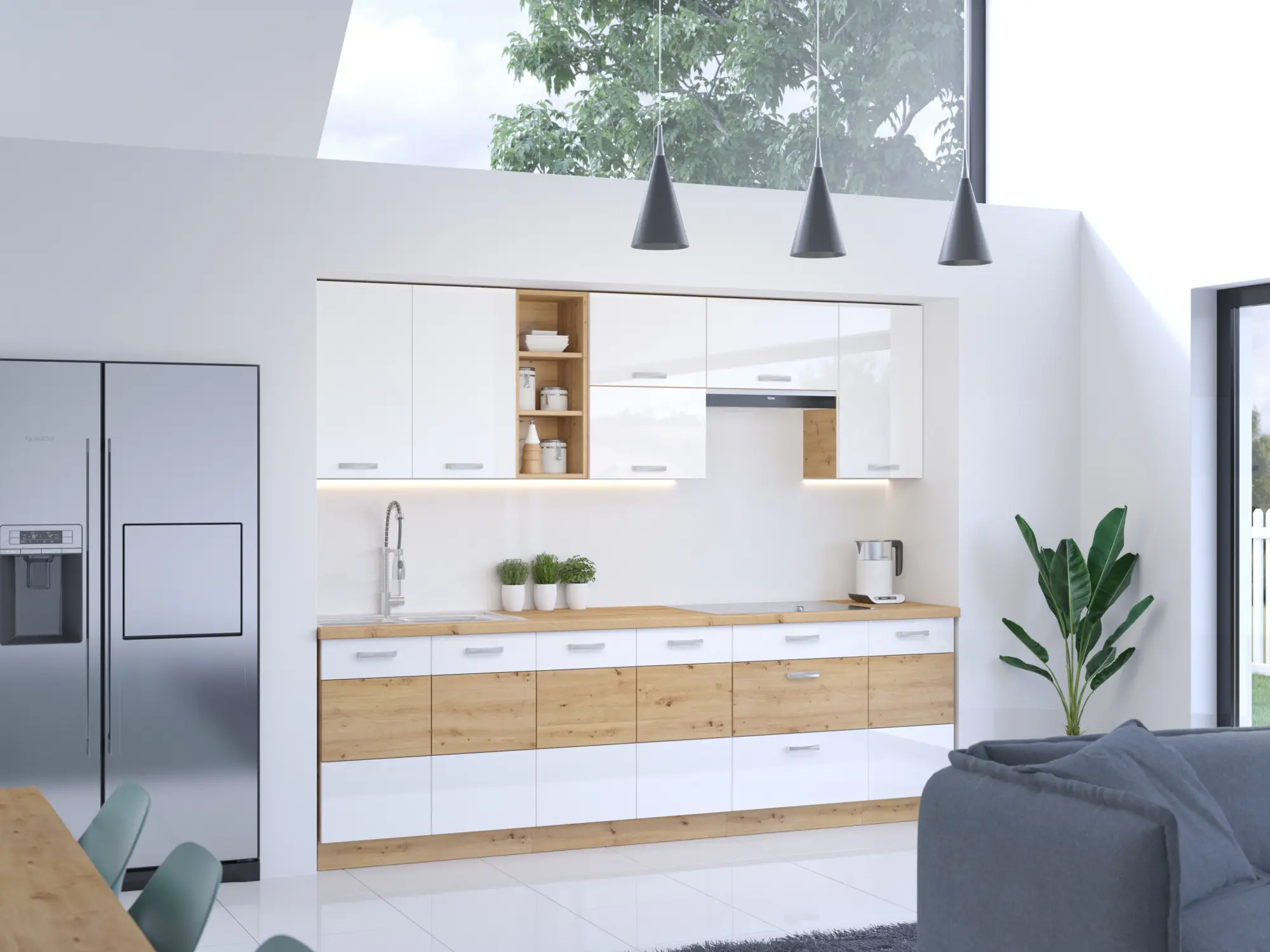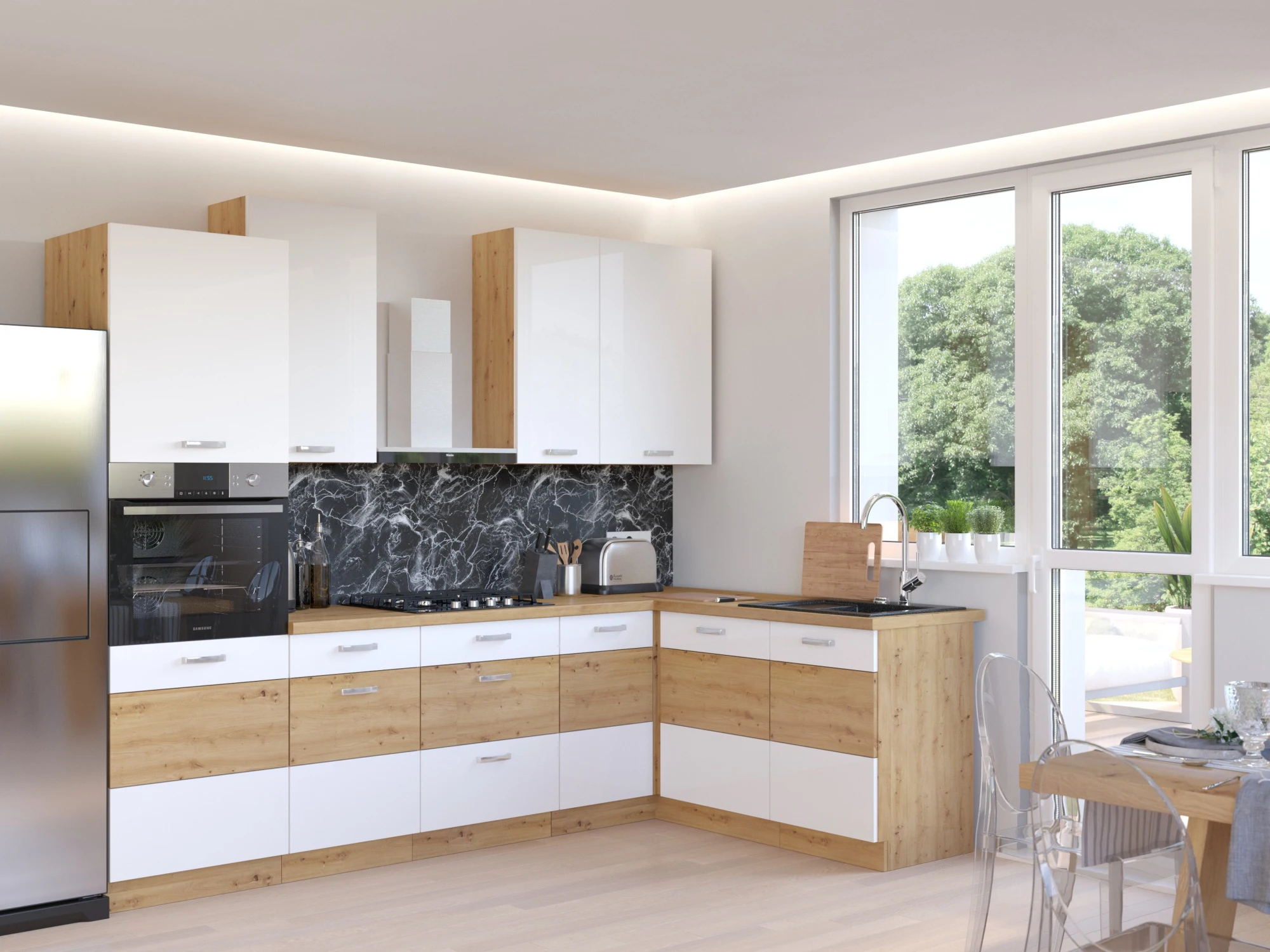 Horní roh 30 cm Vlastnosti skříňky: - je univerzální, lze namontovat na pravou či levou stranu Barva: - korpus: dub artisan Rozměry (šxvxh): 30 x 71,5 x 29 cm Materiál: - korpus: lamino 16 mm,