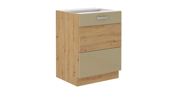 MEADOW, skříňka dolní 60 D 1F BB, korpus: dub artisan, dvířka: cappuccino lesk, dub artisan