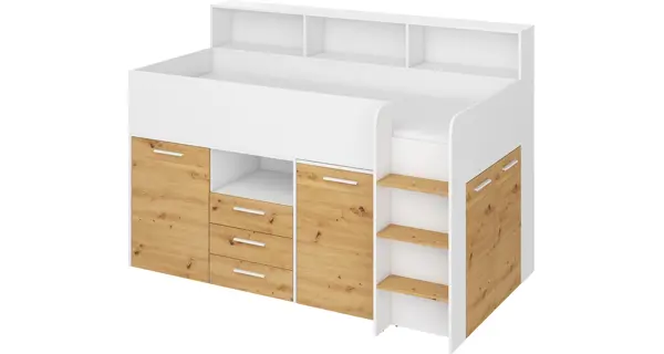 Multifunkční patrová postel DAGOBERT, pravá, bílá/dub artisan