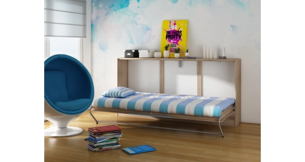 Sklápěcí postel CEDUNA, dub sonoma/modrá, 5 let záruka