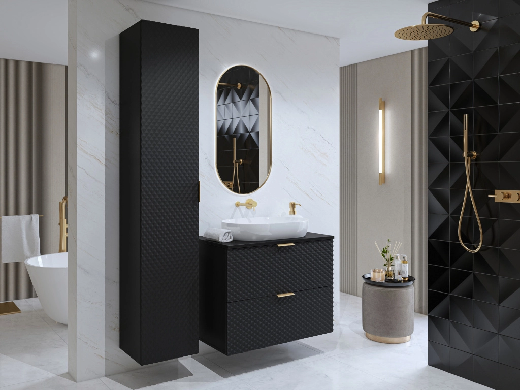 NALLON koupelnová sestava 1 se skříňkou pod umyvadlo 80 cm, černý onyx/černé pyramidky