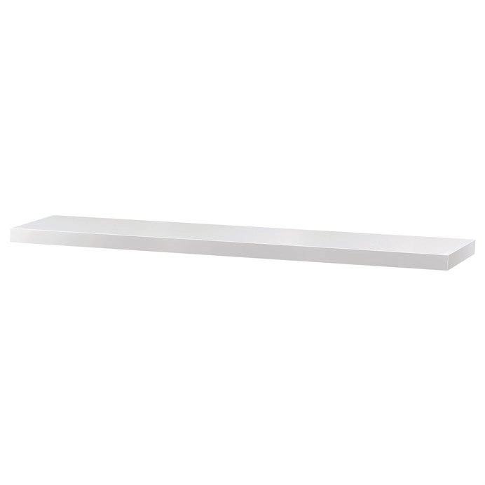 Nástěnná polička 120cm, barva bílá - vysoký lesk Moderní elegantní polička. Balení obsahuje poličku, kovový držák, šrouby a hmoždinky pro uchycení. Materiál: MDF+Lamino Rozměr (šířka x hloubka x výška):