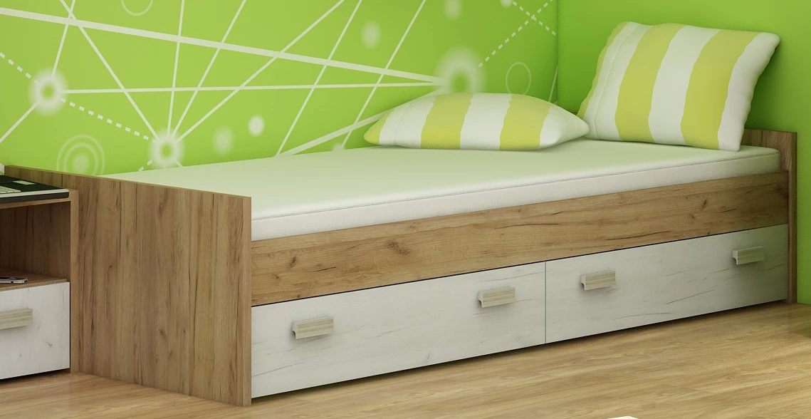 Postel je dodávána včetně roštu, bez matrace. Vhodný rozměr matrace je 90 x 200 cm.