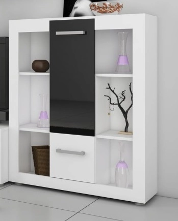 Nízký regál MOLTENO, bílá/černý lesk, 5 let záruka