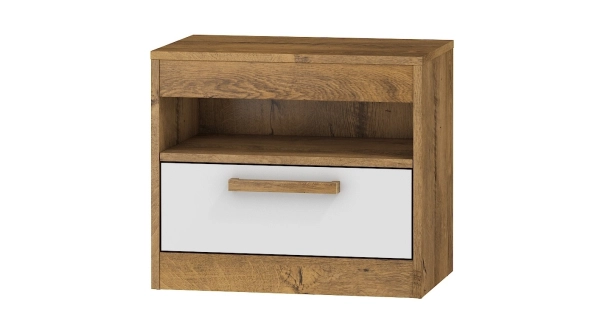Noční stolek GATTON, dub burgundský/bílý lesk