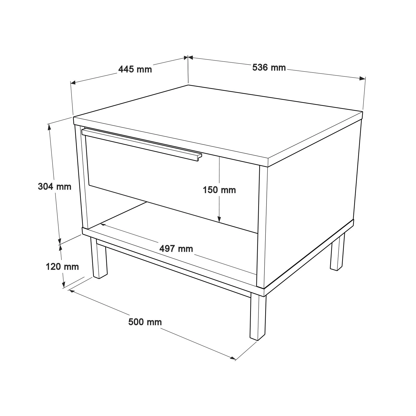 Tento noční stolek je vyroben ze 100% melaminem potažené dřevotřískové desky a vydrží dlouho. Tloušťka 18 mm zajišťuje výjimečnou robustnost a poskytuje vám spolehlivý kus nábytku s dlouhou životností.