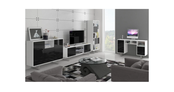 Obývací pokoj BOKARO 2, bílá/černý lesk, 5 let záruka