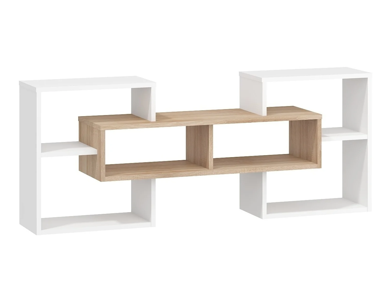 Vzorová sestava obývacího pokoje Uvádíme pouze jako ilustrativní příklad jedné z možných sestav, kterou lze poskládat z jednotlivých segmentů. Jednotlivé díly si je možno vybrat a koupit každý zvlášť. Příkladová sestava zahrnuje: - Skříň (šxvxh): 64 x 203 x 41 cm - Komoda (šxvxh): 64 x 86 x 41 cm - Komoda (šxvxh): 64 x 86 x 41 cm - Police (šxvxh): 127 x 50 x 26 cm - Police (šxvxh): 127 x 50 x 29 cm - TV stolek (šxvxh): 127 x 48 x 38 cm - Vitrína (šxvxh): 64 x 203 x 41 cm Barva: dub sonoma/bílá Materiál: LTD, ABS hrany, sklo
