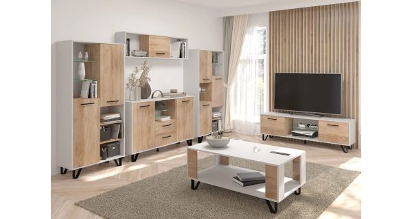 Obývací pokoj PRUDHOE 4, bílá/dub sonoma, 5 let záruka