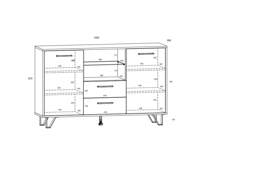 - komoda 2D2S (šxvxh): 140 x 87 x 39 cm