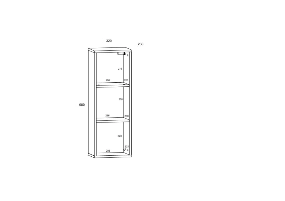 - 2x závěsná skříňka 1P (šxvxh): 32 x 90 x 23 cm - závěsná skříňka 1DP (šxvxh): 32 x 90 x 25 cm - komoda 3D (šxvxh): 120 x 87 x 39 cm