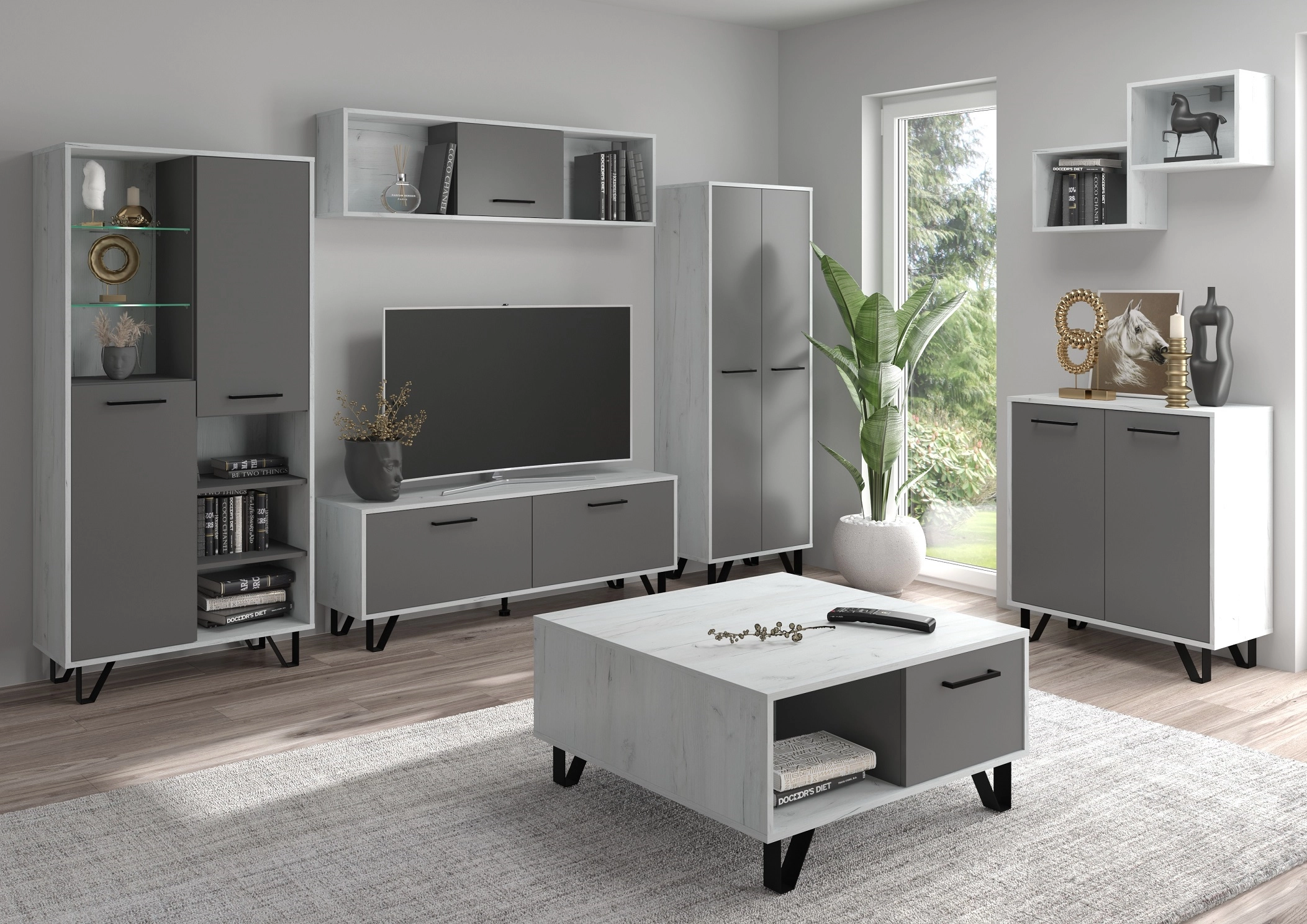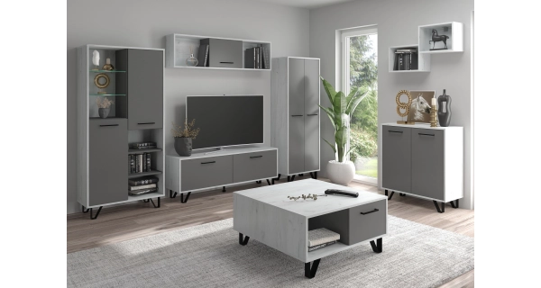 Obývací pokoj PRUDHOE 1, craft bílý/grafit, 5 let záruka