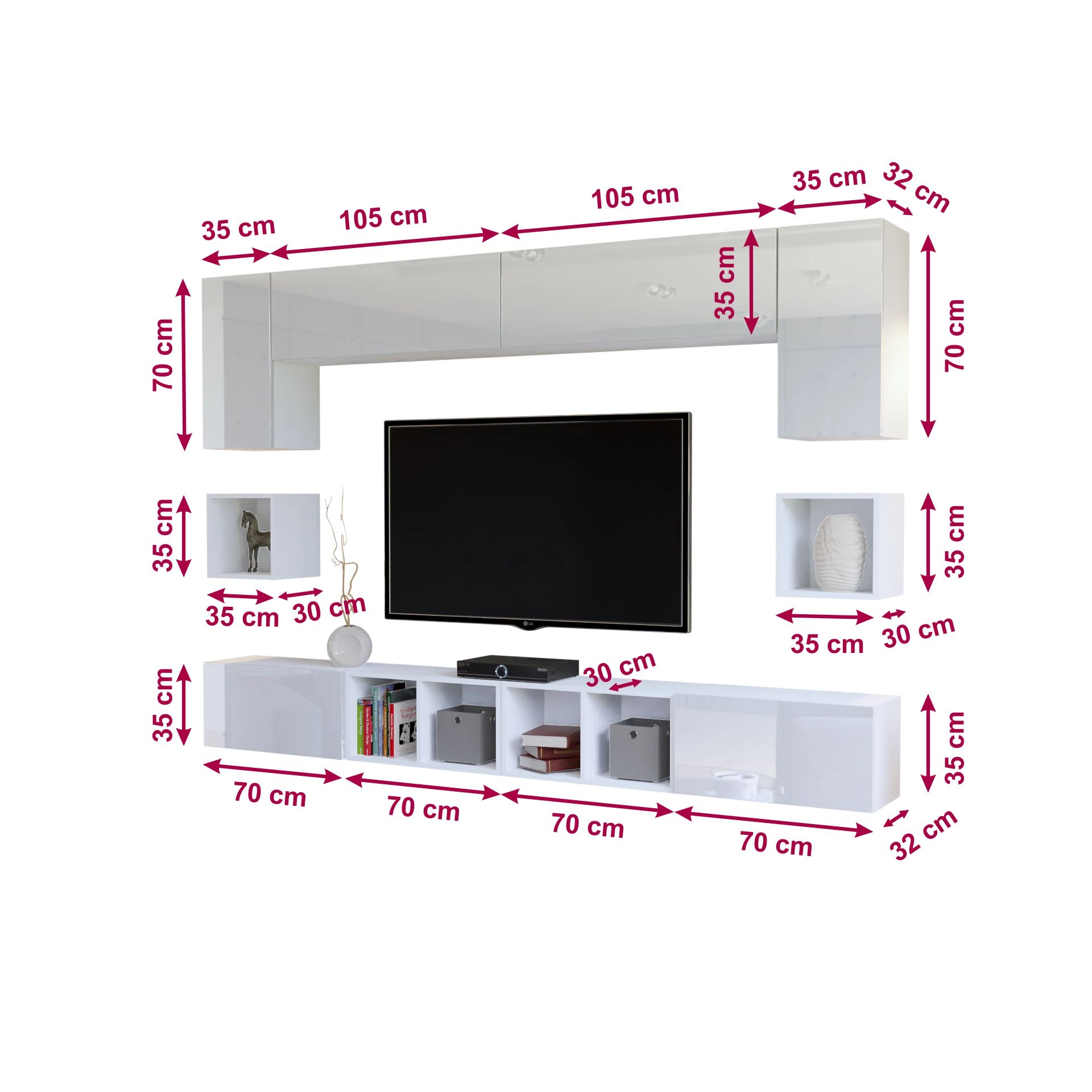 - závěsná skříňka typ 2 (35 x 70 x 32 cm) - 2 kusy v sestavě