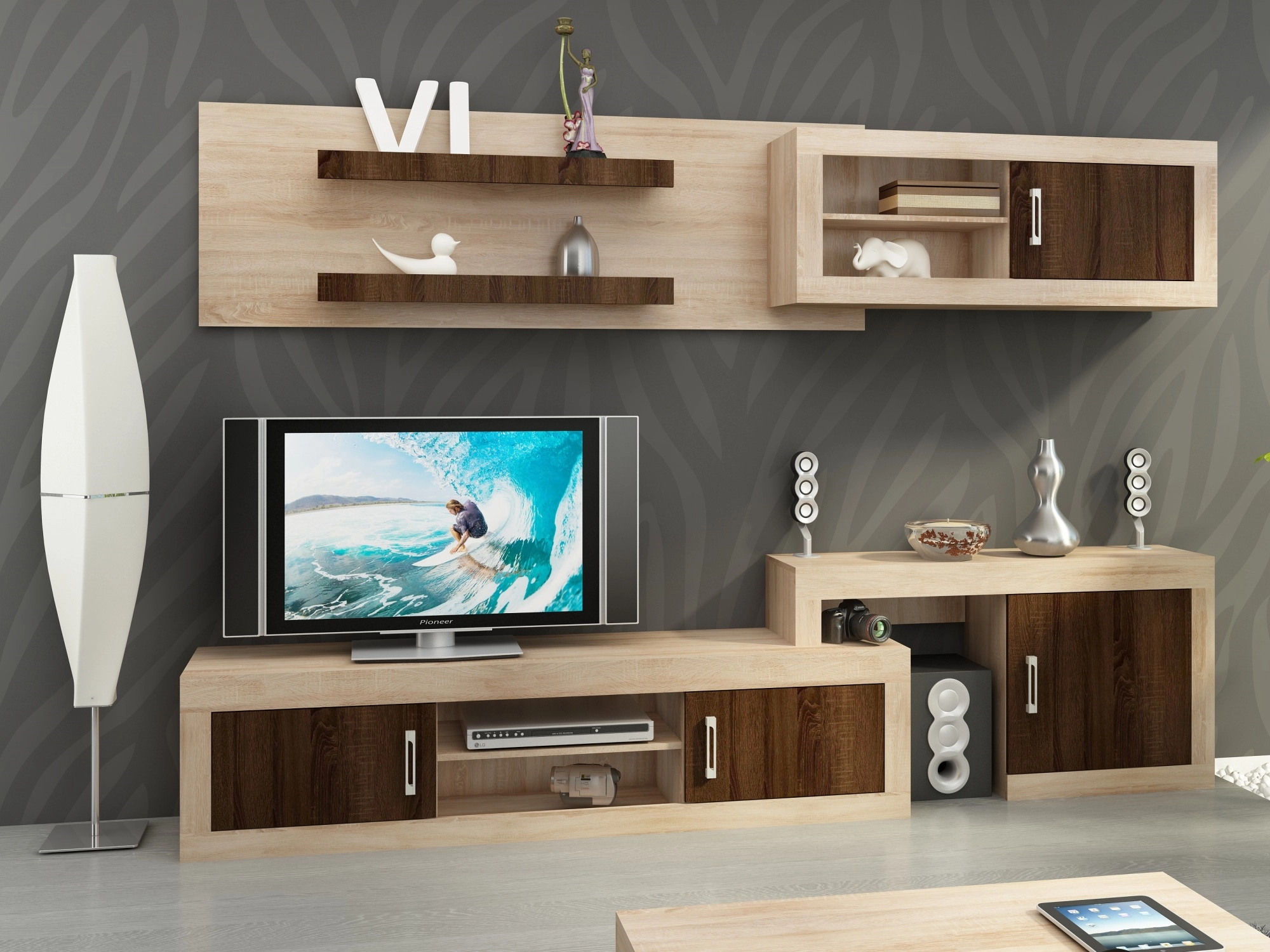 Obývací stěna GOUDINI 1, dub sonoma/dub sonoma tmavý, 5 let záruka