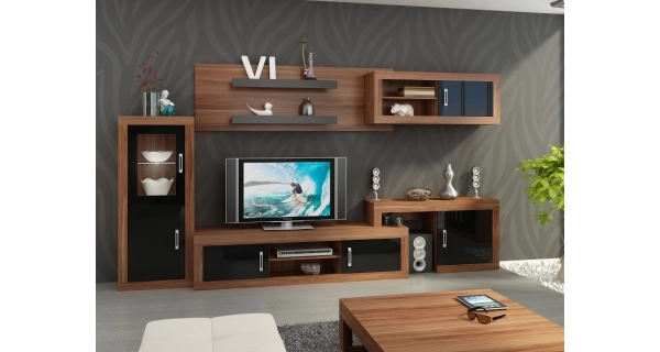 Obývací stěna GOUDINI 5, švestka wallis/černý lesk