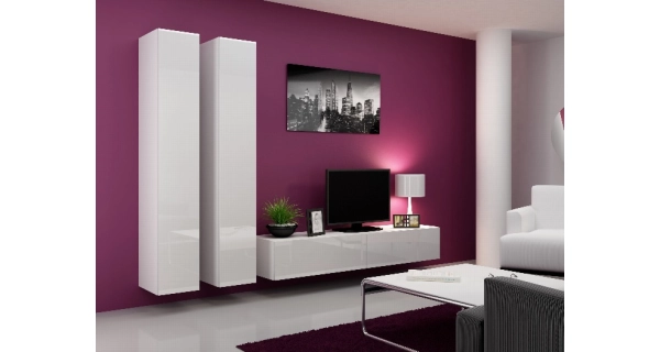 Obývací stěna KEAGEN 4, bílá/bílý lesk