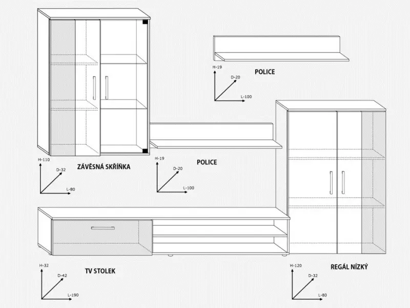 - závěsná skříňka (šxvxh): 80 x 110 x 32 cm