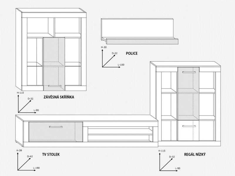 Rozměry jednotlivých elementů (šxvxhl):