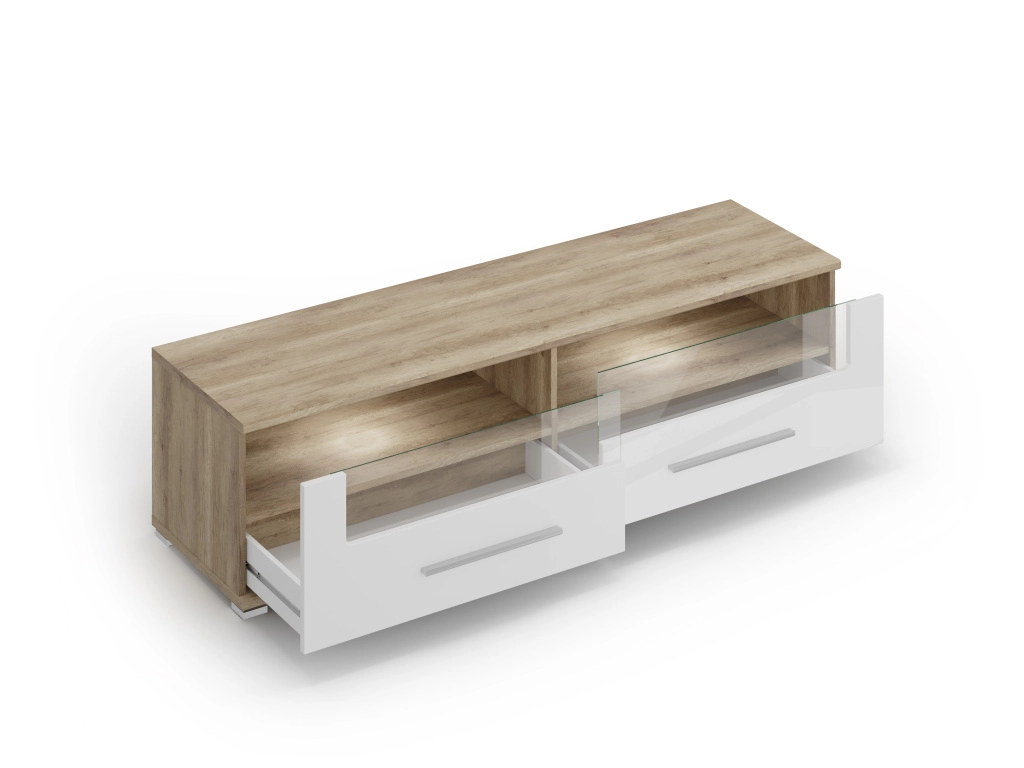 Barva: korpus - dub monument, dvířka - bílý lesk, LED osvětlení - bílá
