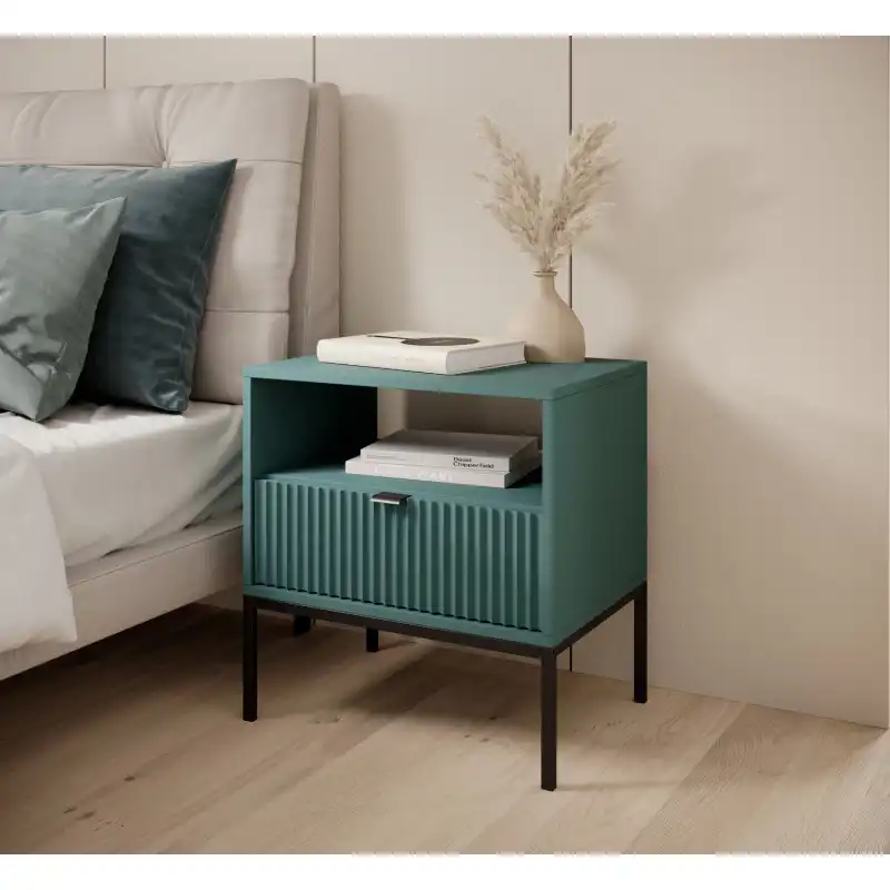 Odkládací stolekBarva: zelená/černá podnož/černé úchytyRozměry (šxvxh): 54 x 56 x 39 cmMateriál: - podnož z kovového rámu- MDF s ABS hranami- rukojeť z černého kovuDodáváno v demontu.