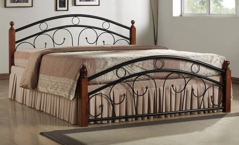 PEMBA, postel 180x200 s roštem, masiv/kov, třešeň antická