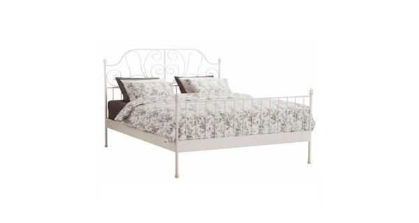 Kovová postel s roštem 140x200 cm Rozměry (šxvxh): 146,3 x 130 x 208 cm, výška rámu 30,4 cm; ložná plocha 140 x 200 cm Materiál: kov – bílá barva Součástí postele je lamelový rošt, matraci je třeba