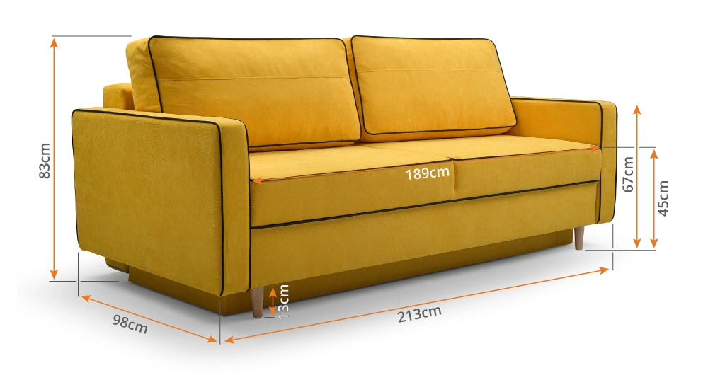 Čalouněná pohovka Látka: Lincoln 1255 - modrá Další obrázky sedačky jsou pouze ilustrační, jiná barva! Pohovka má čalouněná záda. Rozměry (šxvxh): 213 x 94 x 100 cm Plocha po rozložení: 190 x 152 cm Nohy: dřevěné Materiál: - vyrobeno z vysoce kvalitních materiálů,