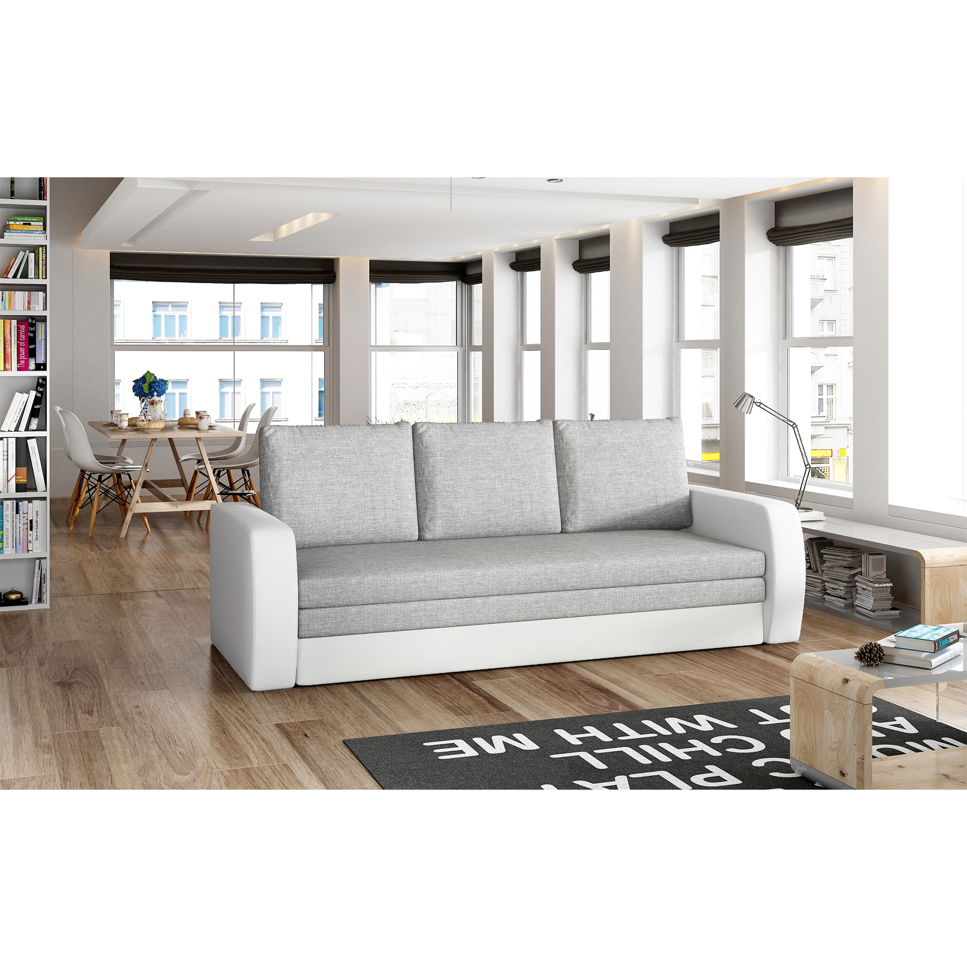 Ideální pohovka pro interiéry ve skandinávském stylu. Model vybavený přídavnou funkcí, která umožňuje nastavit pohovku do polohy na spaní. Systém rozkládání v podobě posuvného dna na kolečkách a skládací pěny dělené na sedáku umožňuje rychlé přizpůsobení nábytku funkci spaní. Další výhodou je přihrádka na lůžkoviny. Pohovka není vhodná do prostoru, nemá čalouněná záda.