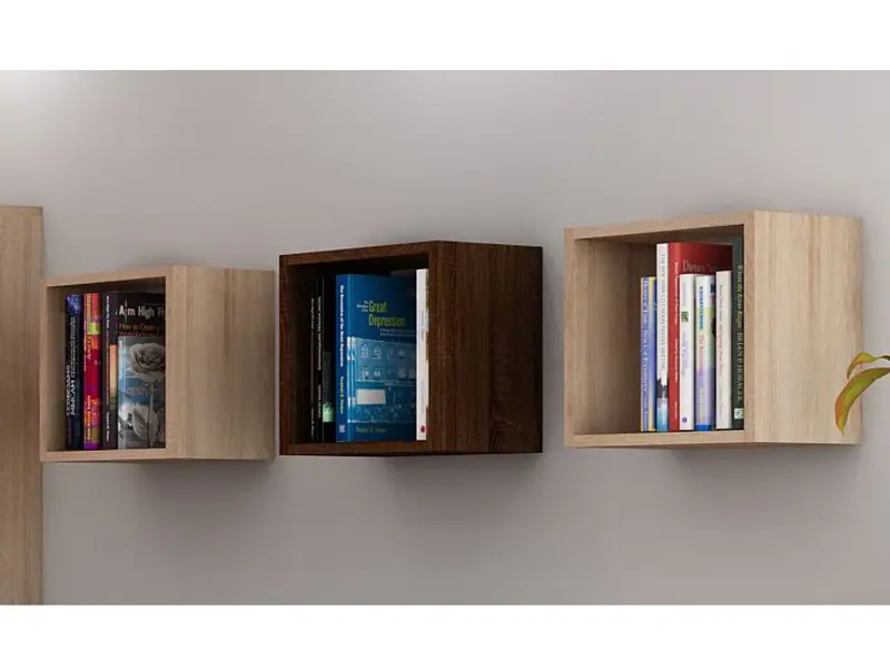 Police ve tvaru čtverce 3 ks Barva: dub sonoma světlý/dub sonoma tmavý Materiál: lamino 16 mm, ABS hrana 0,6 mm Rozměry (šxvxhl): 30 x 30 x 22 cm Dodává se v demontu.